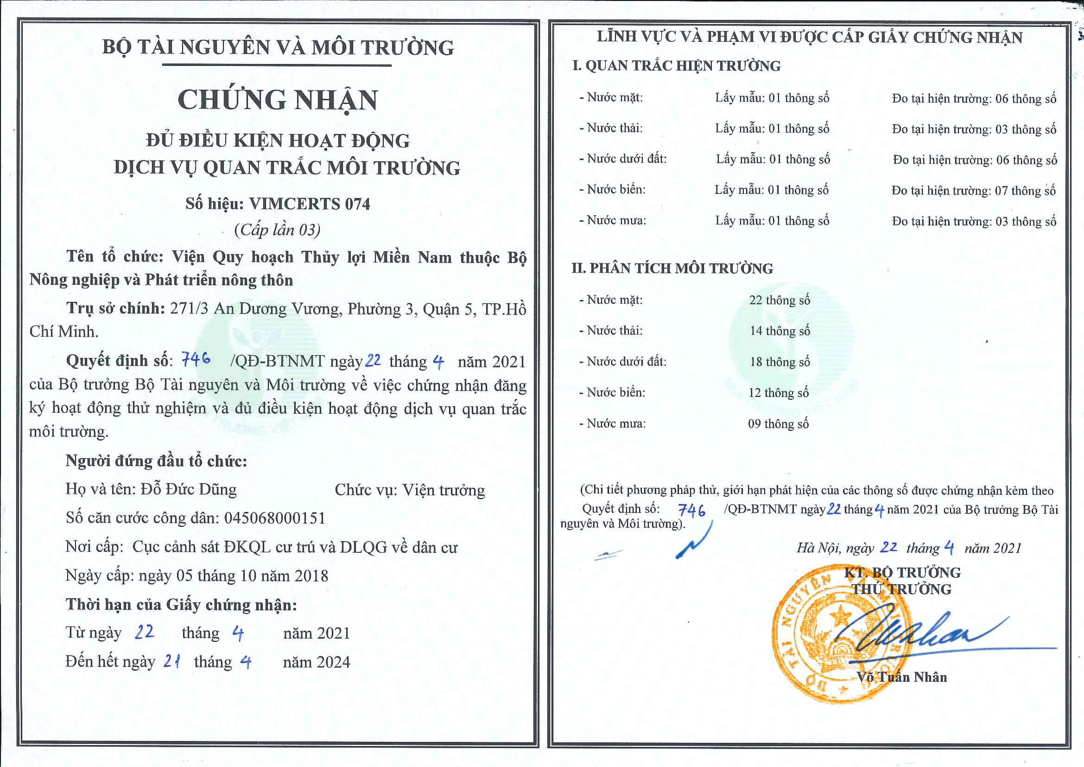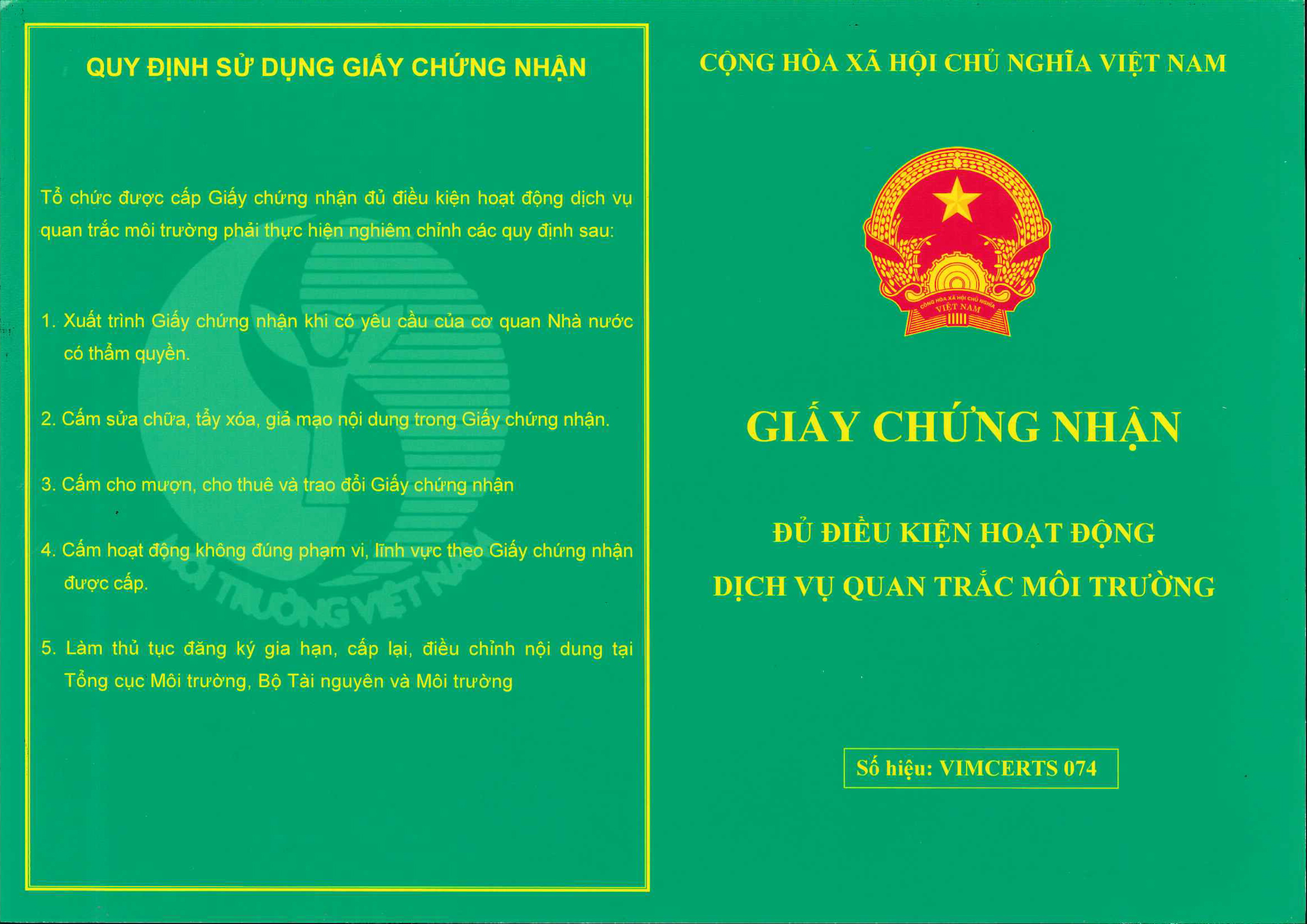 Chứng nhận đủ điều kiện quan trắc môi trường