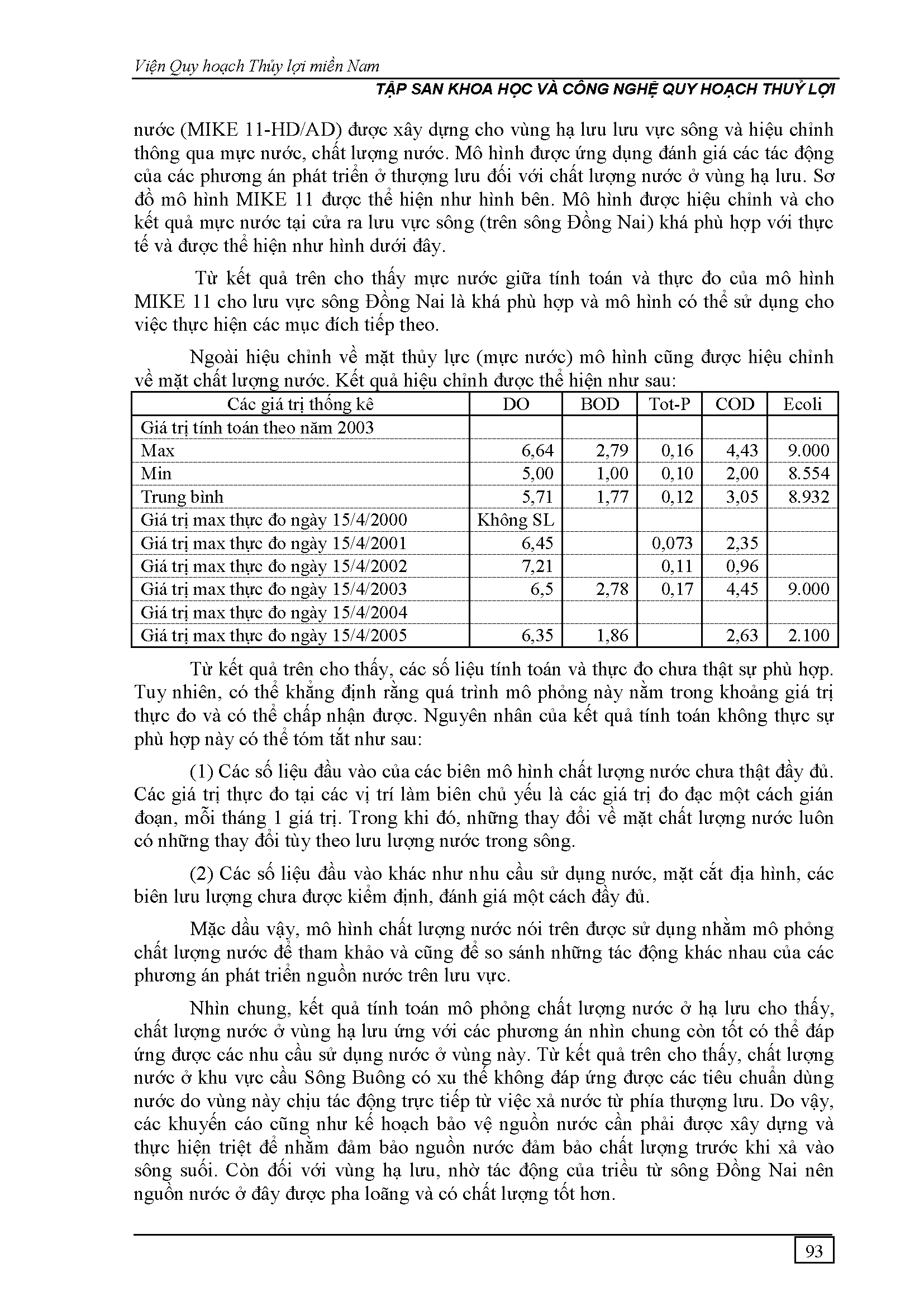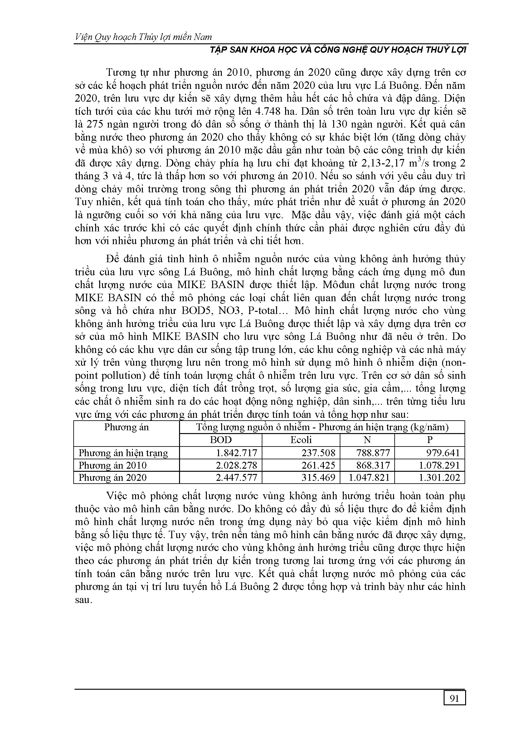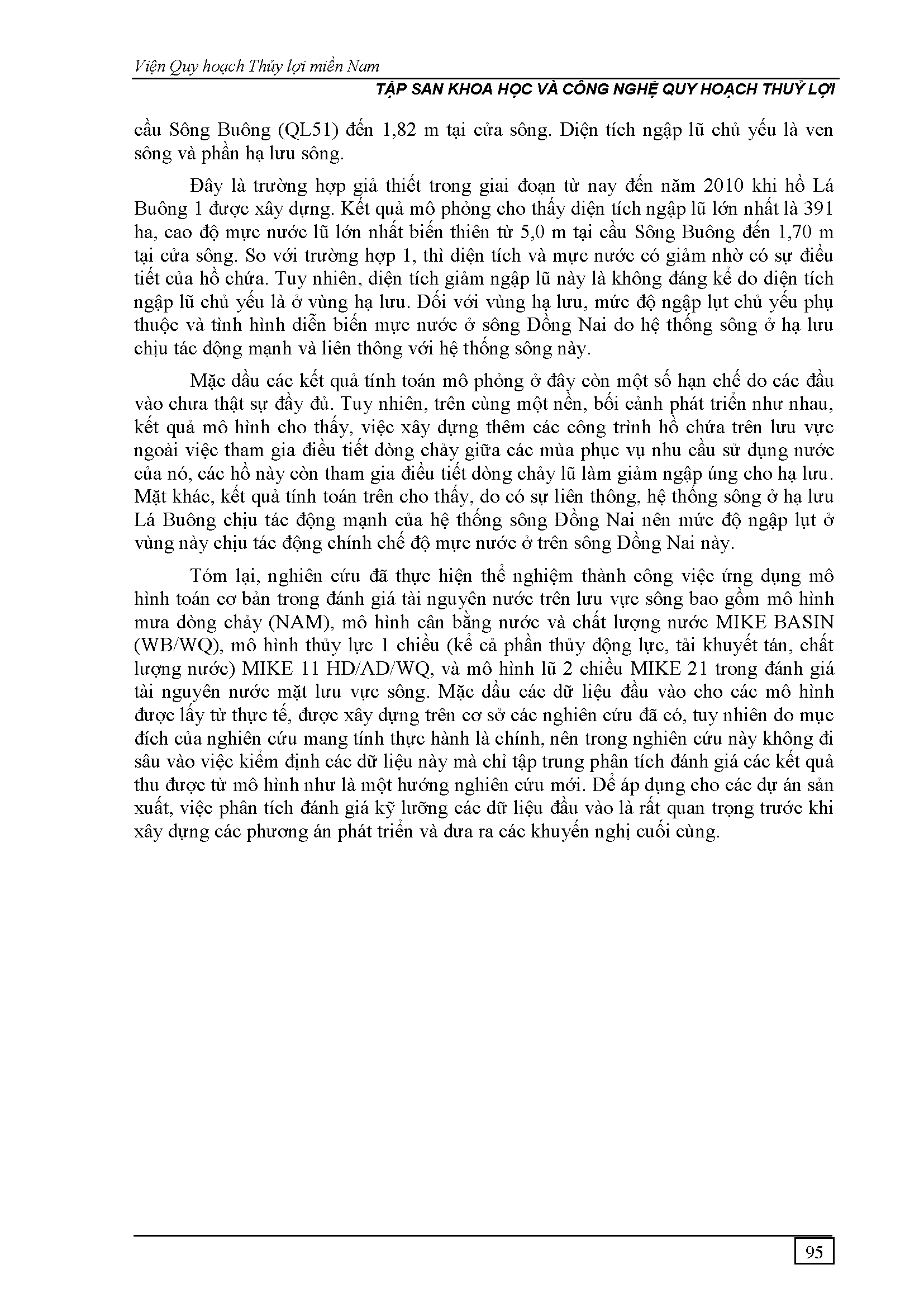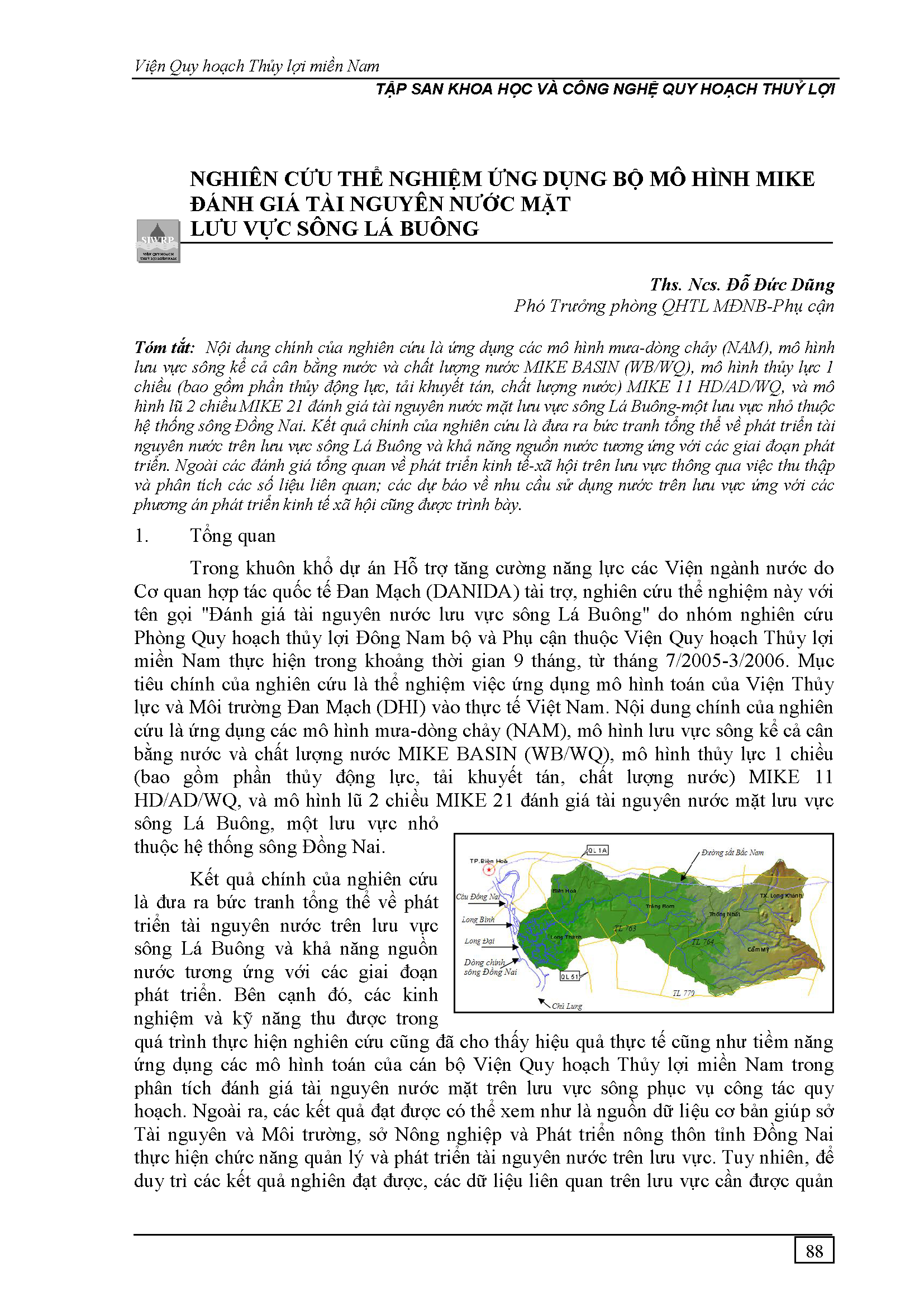 Nghiên cứu thể nghiệm ứng dụng bộ Mô hình MIKE đánh giá tài nguyên nước mặt lưu vực sông Lá Buông