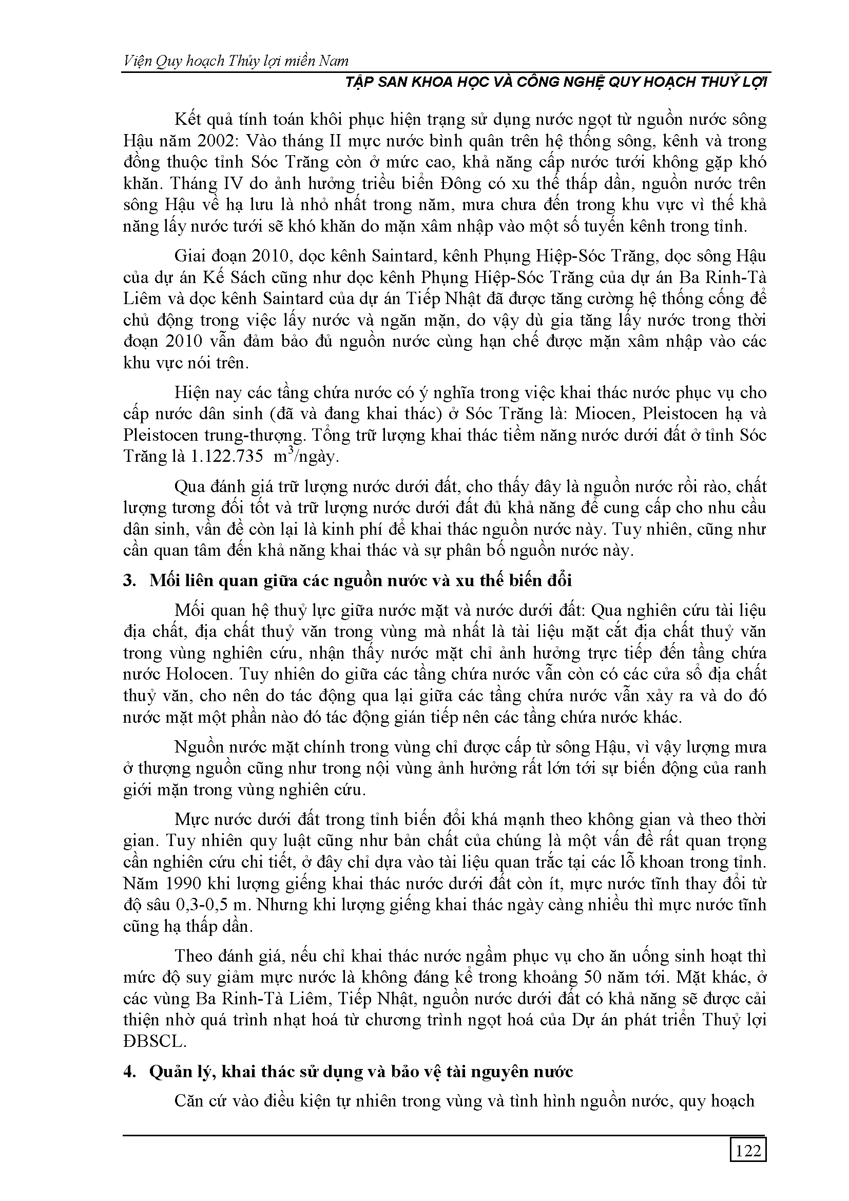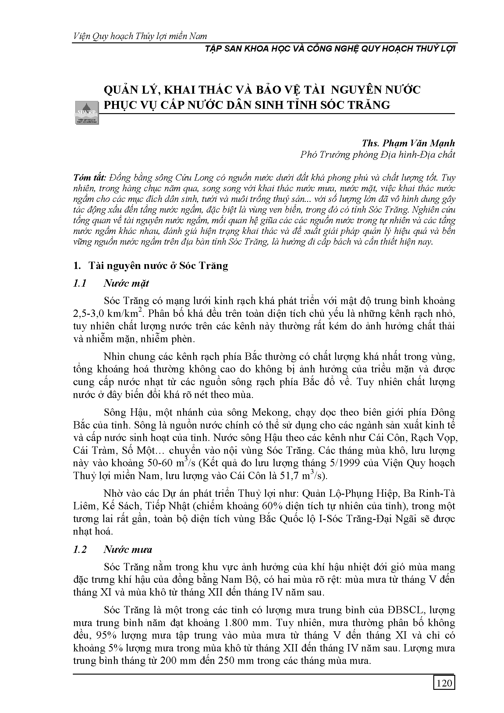 Quản lý, khai thác và bảo vệ tài nguyên nước phục vụ dân sinh tỉnh Sóc Trăng