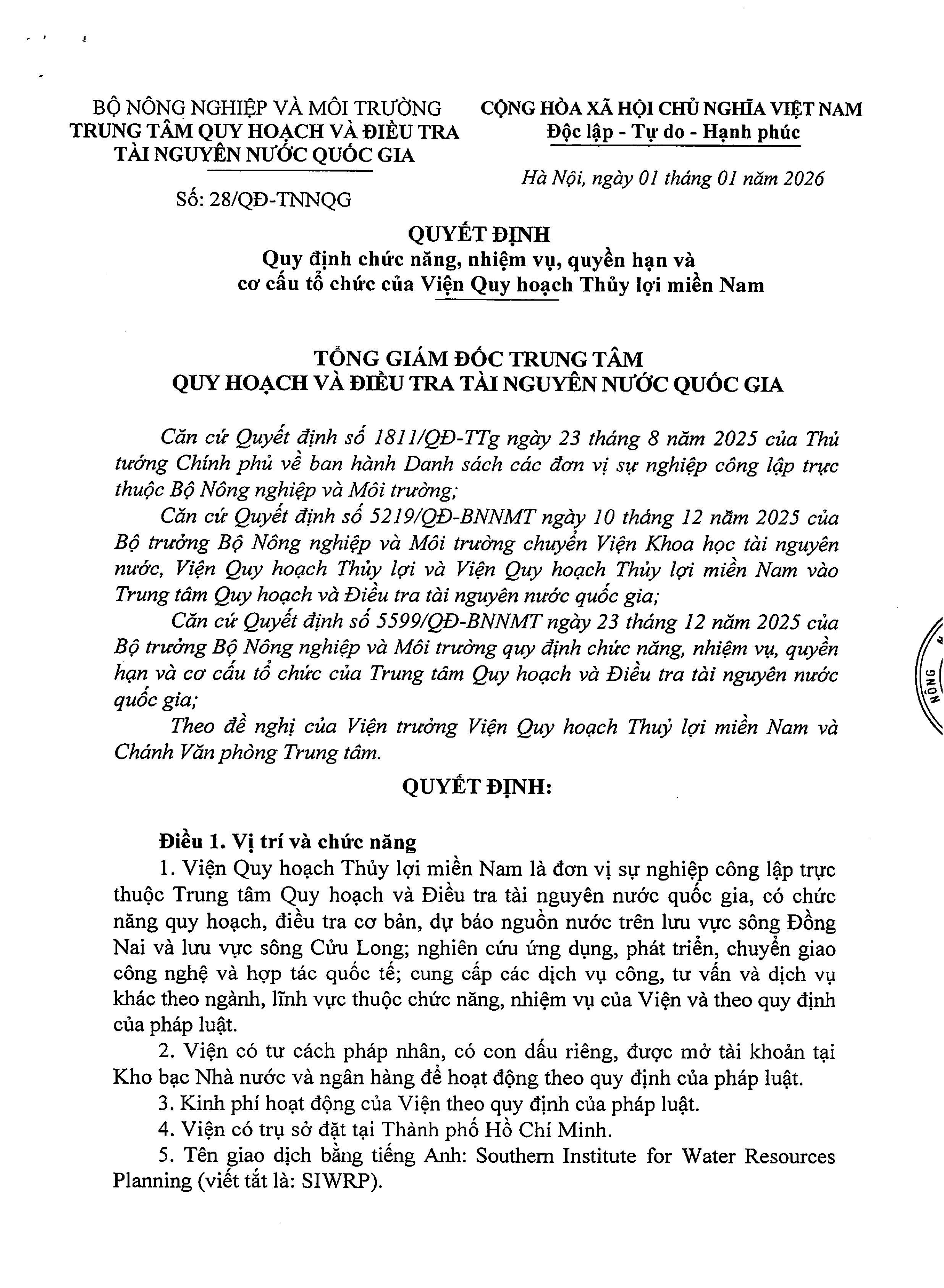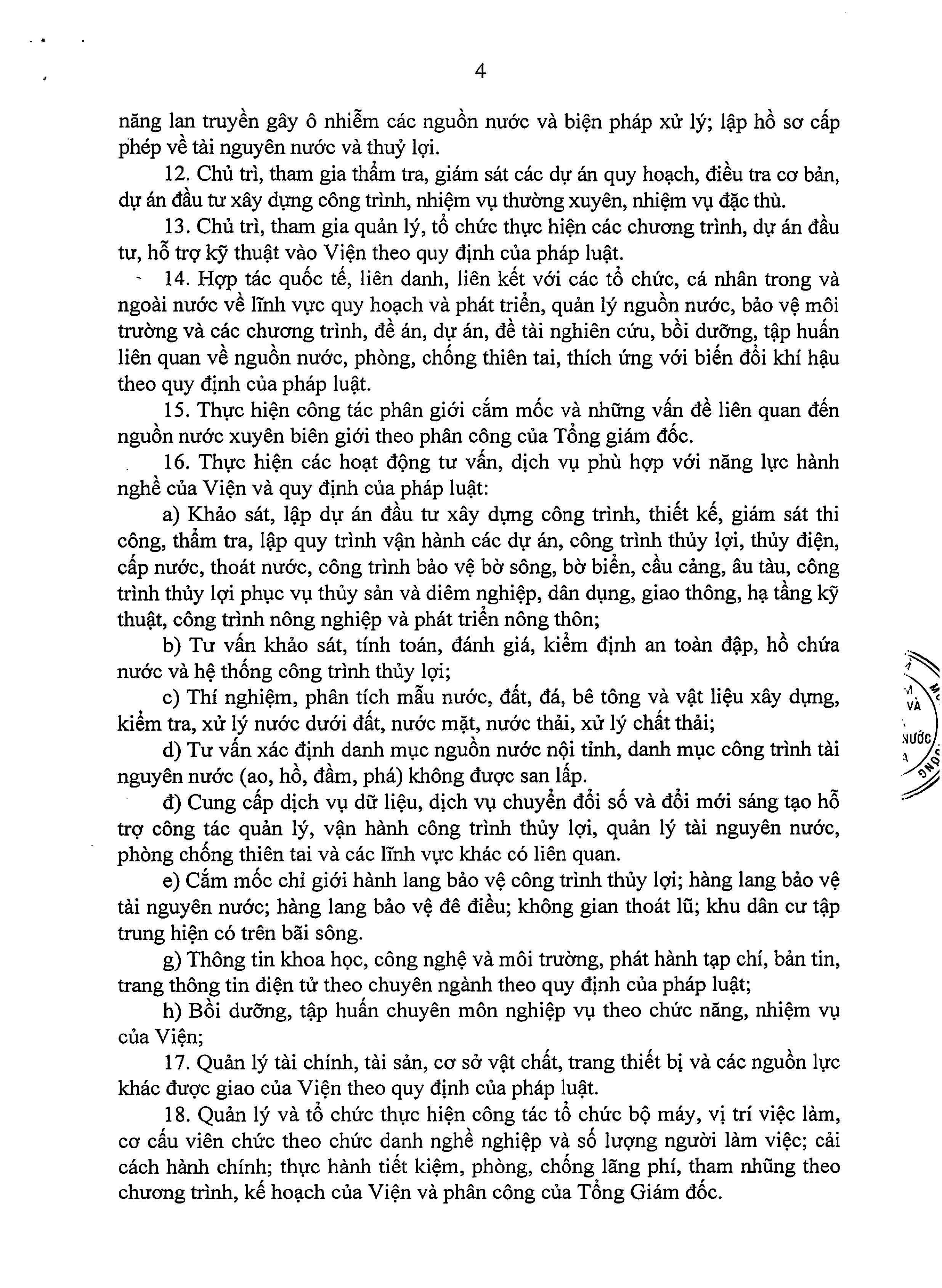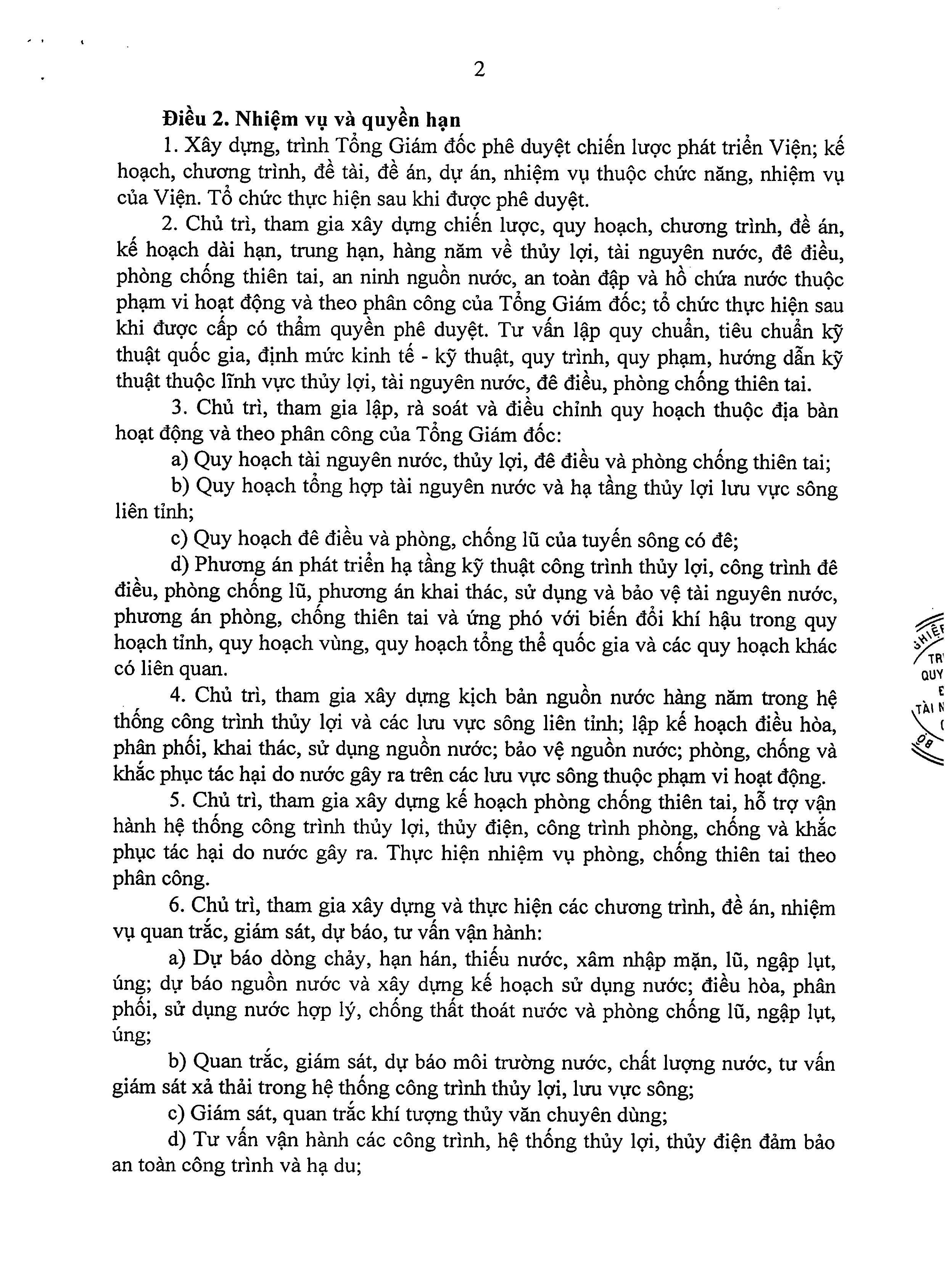 Quy định chức năng nhiệm vụ và cơ cấu tổ chức Viện Quy hoạch Thủy lợi Miền Nam