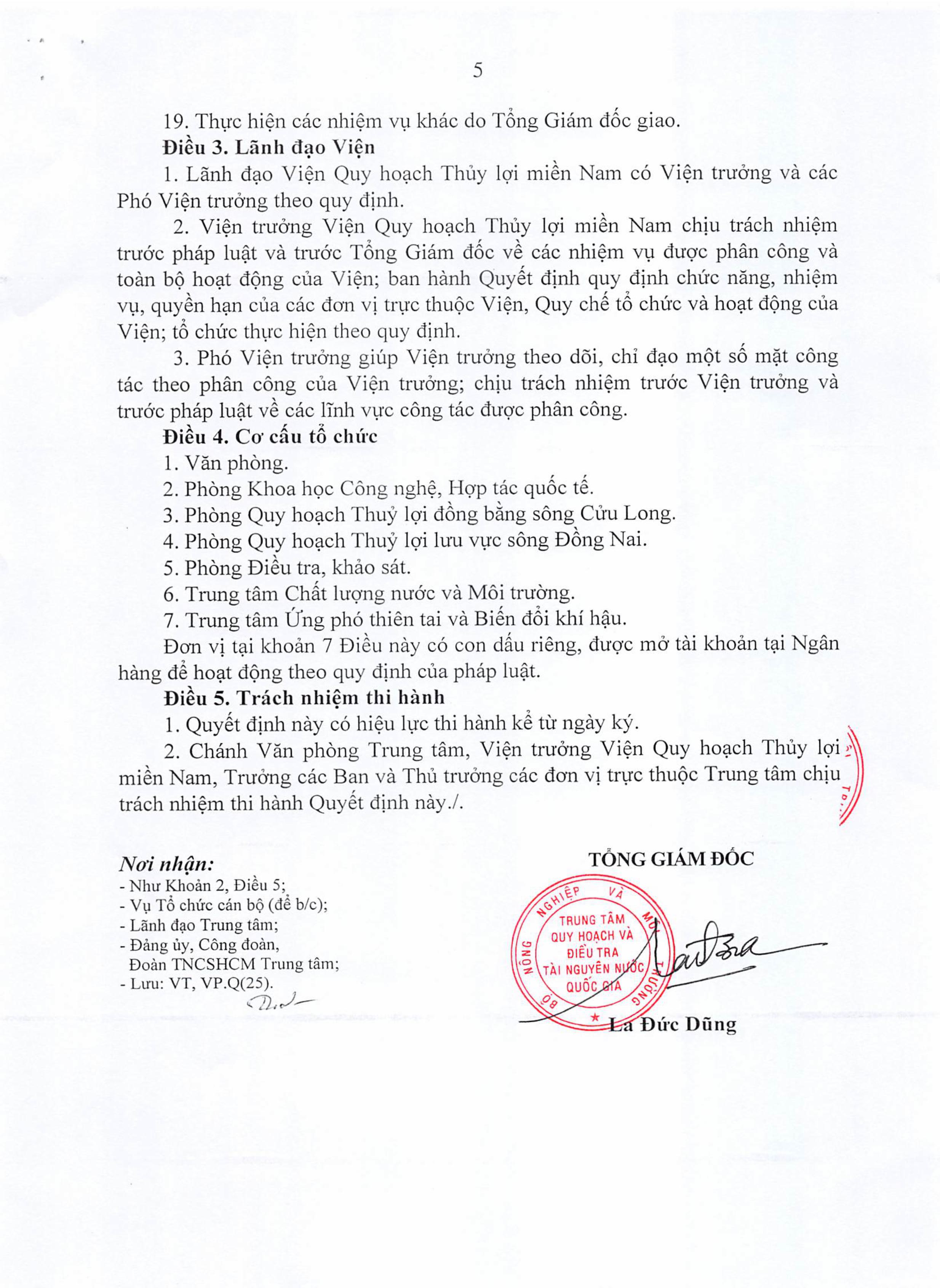 Điều lệ tổ chức và hoạt động của Viện Quy hoạch Thủy lợi Miền Nam