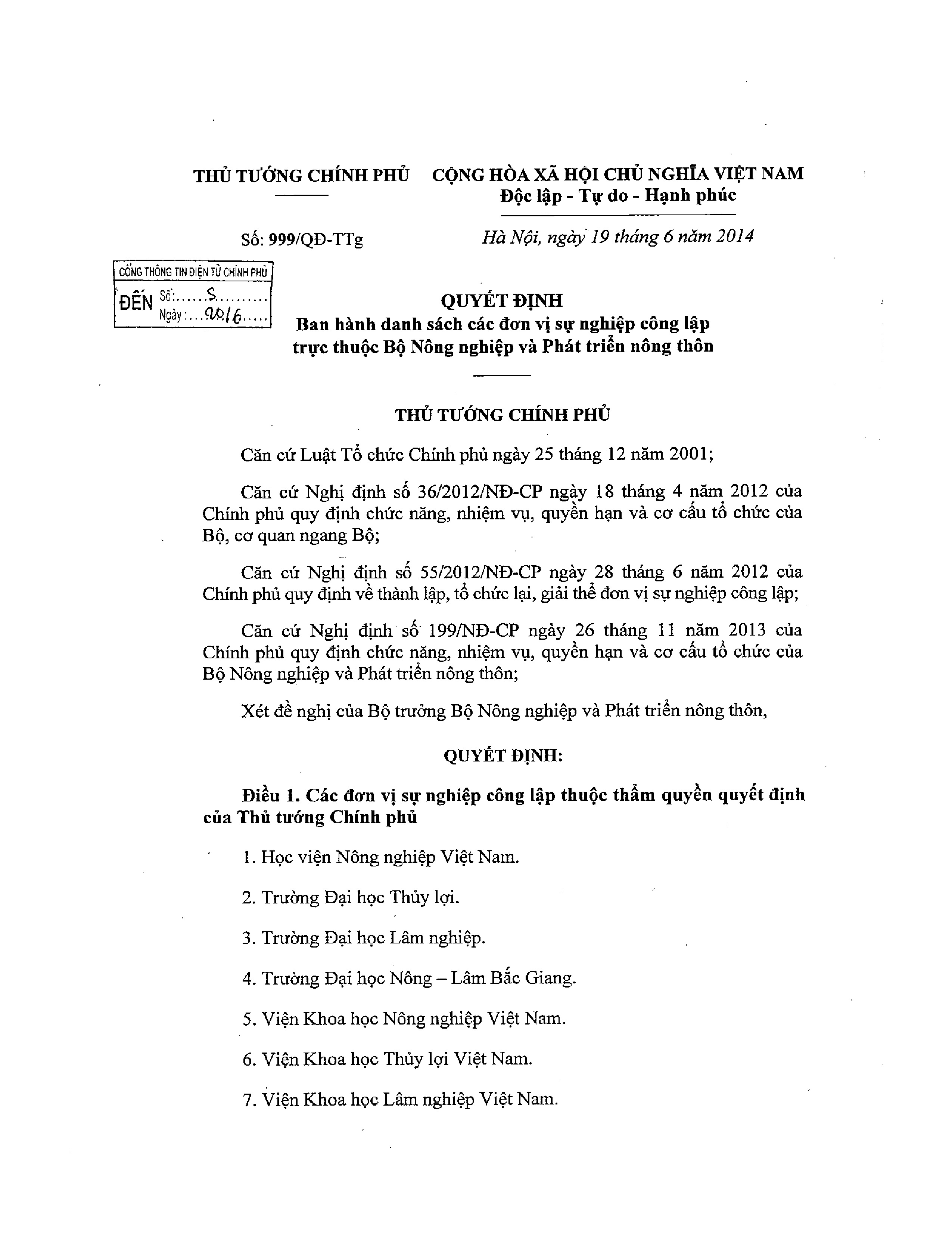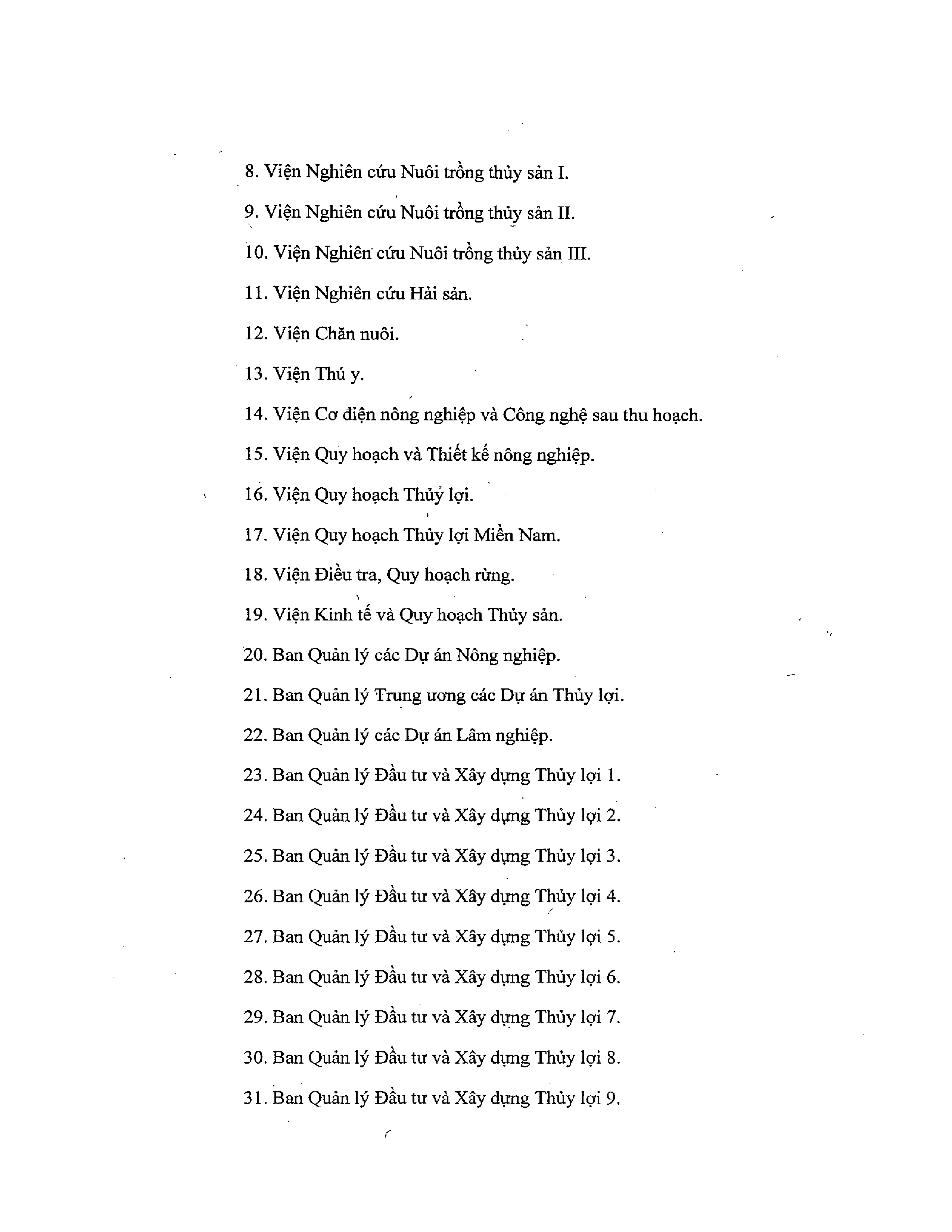 Quyết định ban hành danh sách các đơn vị sự nghiệp công lập trực thuộc Bộ NN&PTNT